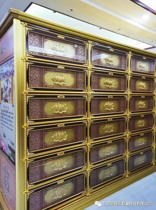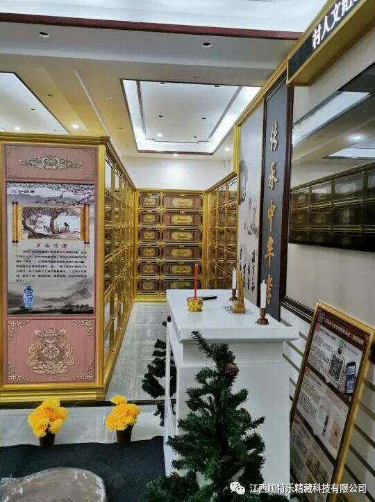江西顧特樂精藏科技有限公司位于江西省樟樹市,創立于2009年,擁有注冊資金5099萬元,是一家集研發、制造、銷售、服務為一體的生產廠家。是國家“高新技術企業”、“國家知識產權標桿企業”“兩化融合貫標企業”,“顧特樂”品牌被評為“江西省名牌產品”,中國殯協理事會員,江西省殯協副會長單位。主營:骨灰存放架、牌位架、佛龕架及相關配套產品。平均每年獲得上十份專利證書。自有“云端凈土”運營系統,為廣大殯儀場所,提供專屬“互聯網+殯葬”服務。