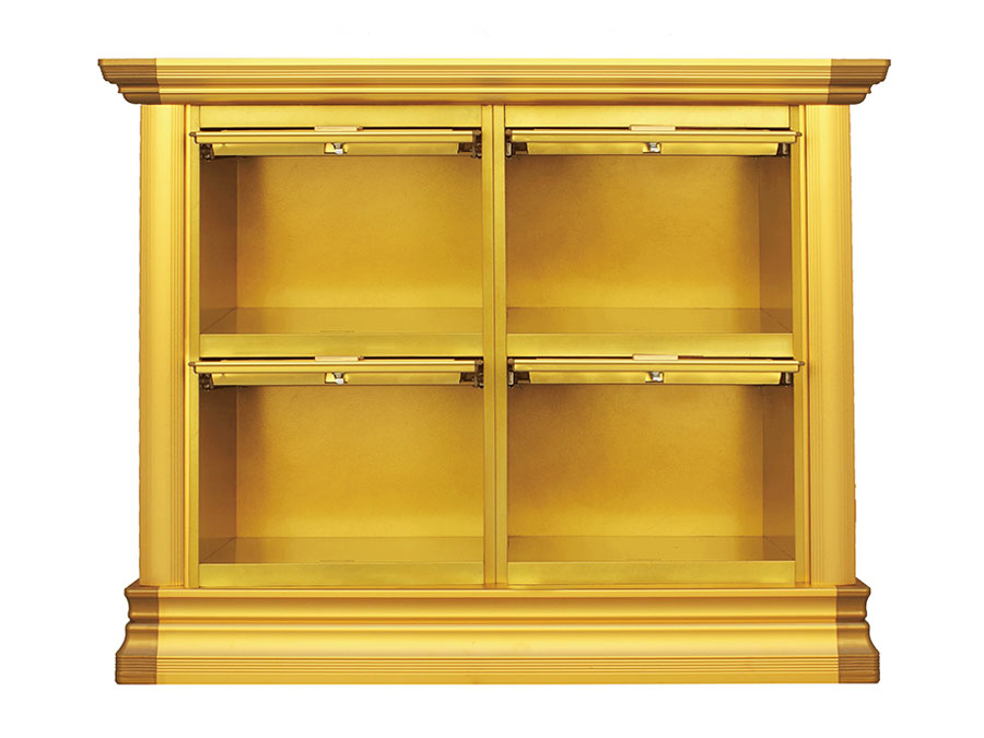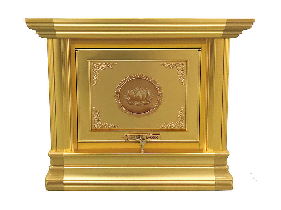 骨灰存放架是由箱體、面板、側板、頂蓋、底座、轉角、封板等構成,以及佛臺、掛落、佛 龕等相關配件構成。 箱體:分鍍鋅板、不銹鋼板、鋁板等五金板材箱體,鋁合金中空板扣接式箱體和純鋁壓鑄型 箱體。 面板:面板根據工藝不同、材料不同,風格各異、大不相同,既要起到美觀易分類作用,又 要起到防火、防塵、防潮、防蟲等作用。 側板:用于裝飾和保護箱體側面的作用,又可根據現場,對存放架分類的標識作用,一目了 然方便管理。 頂蓋、底座:都是穩固整列和整排箱體水平線,底座還起到一部分承重作用。 轉角、封板:箱體轉彎處和空隙處塑形的作用。 佛臺:由幾個骨灰存放架組成一個小型佛龕臺,用于放置佛像。 佛龕、掛落:整排存放架為了劃分區域,在每個區域靠墻上方,設置小型佛龕,為了美觀, 加上掛落。
