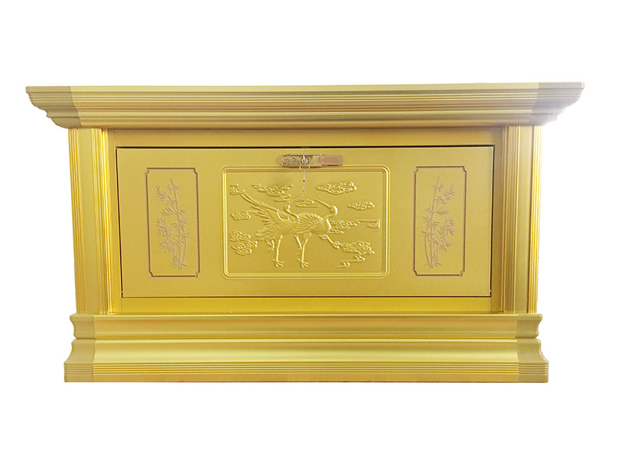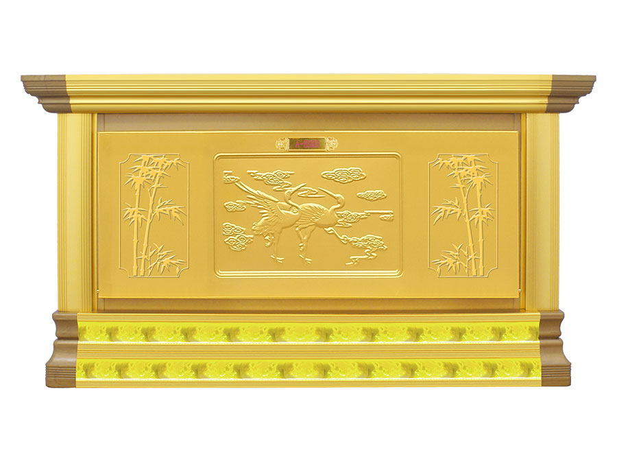 骨灰存放架是由箱體、面板、側板、頂蓋、底座、轉角、封板等構成,以及佛臺、掛落、佛 龕等相關配件構成。 箱體:分鍍鋅板、不銹鋼板、鋁板等五金板材箱體,鋁合金中空板扣接式箱體和純鋁壓鑄型 箱體。 面板:面板根據工藝不同、材料不同,風格各異、大不相同,既要起到美觀易分類作用,又 要起到防火、防塵、防潮、防蟲等作用。 側板:用于裝飾和保護箱體側面的作用,又可根據現場,對存放架分類的標識作用,一目了 然方便管理。 頂蓋、底座:都是穩固整列和整排箱體水平線,底座還起到一部分承重作用。 轉角、封板:箱體轉彎處和空隙處塑形的作用。 佛臺:由幾個骨灰存放架組成一個小型佛龕臺,用于放置佛像。 佛龕、掛落:整排存放架為了劃分區域,在每個區域靠墻上方,設置小型佛龕,為了美觀, 加上掛落。