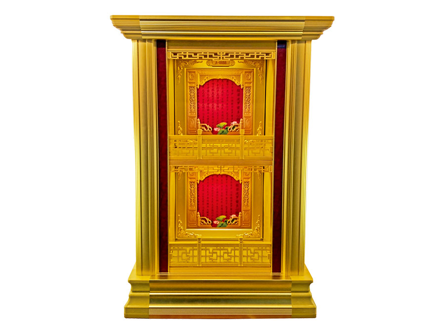 骨灰存放架是由箱體、面板、側板、頂蓋、底座、轉角、封板等構成,以及佛臺、掛落、佛 龕等相關配件構成。 箱體:分鍍鋅板、不銹鋼板、鋁板等五金板材箱體,鋁合金中空板扣接式箱體和純鋁壓鑄型 箱體。 面板:面板根據工藝不同、材料不同,風格各異、大不相同,既要起到美觀易分類作用,又 要起到防火、防塵、防潮、防蟲等作用。 側板:用于裝飾和保護箱體側面的作用,又可根據現場,對存放架分類的標識作用,一目了 然方便管理。 頂蓋、底座:都是穩固整列和整排箱體水平線,底座還起到一部分承重作用。 轉角、封板:箱體轉彎處和空隙處塑形的作用。 佛臺:由幾個骨灰存放架組成一個小型佛龕臺,用于放置佛像。 佛龕、掛落:整排存放架為了劃分區域,在每個區域靠墻上方,設置小型佛龕,為了美觀, 加上掛落。