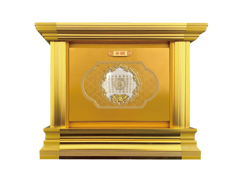 骨灰存放架是由箱體、面板、側(cè)板、頂蓋、底座、轉(zhuǎn)角、封板等構(gòu)成,以及佛臺(tái)、掛落、佛 龕等相關(guān)配件構(gòu)成。 箱體:分鍍鋅板、不銹鋼板、鋁板等五金板材箱體,鋁合金中空板扣接式箱體和純鋁壓鑄型 箱體。 面板:面板根據(jù)工藝不同、材料不同,風(fēng)格各異、大不相同,既要起到美觀易分類作用,又 要起到防火、防塵、防潮、防蟲等作用。 側(cè)板:用于裝飾和保護(hù)箱體側(cè)面的作用,又可根據(jù)現(xiàn)場(chǎng),對(duì)存放架分類的標(biāo)識(shí)作用,一目了 然方便管理。 頂蓋、底座:都是穩(wěn)固整列和整排箱體水平線,底座還起到一部分承重作用。 轉(zhuǎn)角、封板:箱體轉(zhuǎn)彎處和空隙處塑形的作用。 佛臺(tái):由幾個(gè)骨灰存放架組成一個(gè)小型佛龕臺(tái),用于放置佛像。 佛龕、掛落:整排存放架為了劃分區(qū)域,在每個(gè)區(qū)域靠墻上方,設(shè)置小型佛龕,為了美觀, 加上掛落。