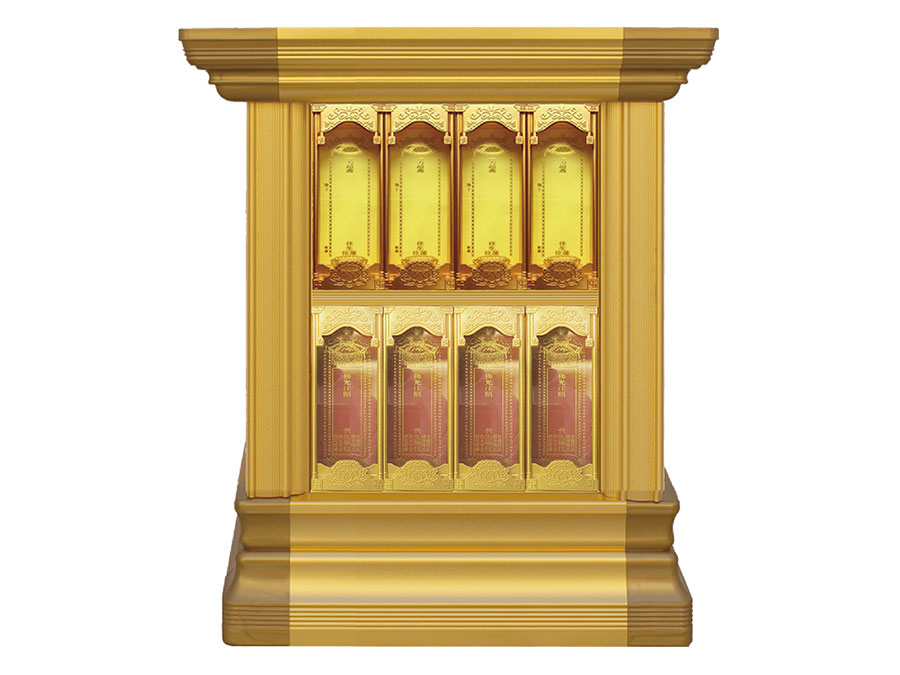 長往生牌位是由盒體、門板、側板、頂蓋、底座、轉角、地臺、封板等構成。